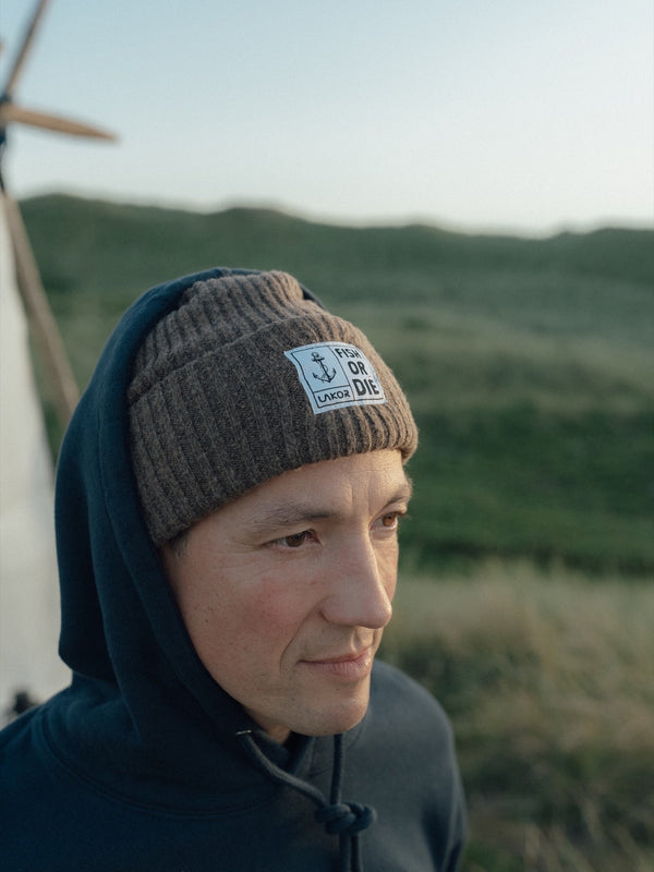 Fish or Die Beanie (Dark Brown)