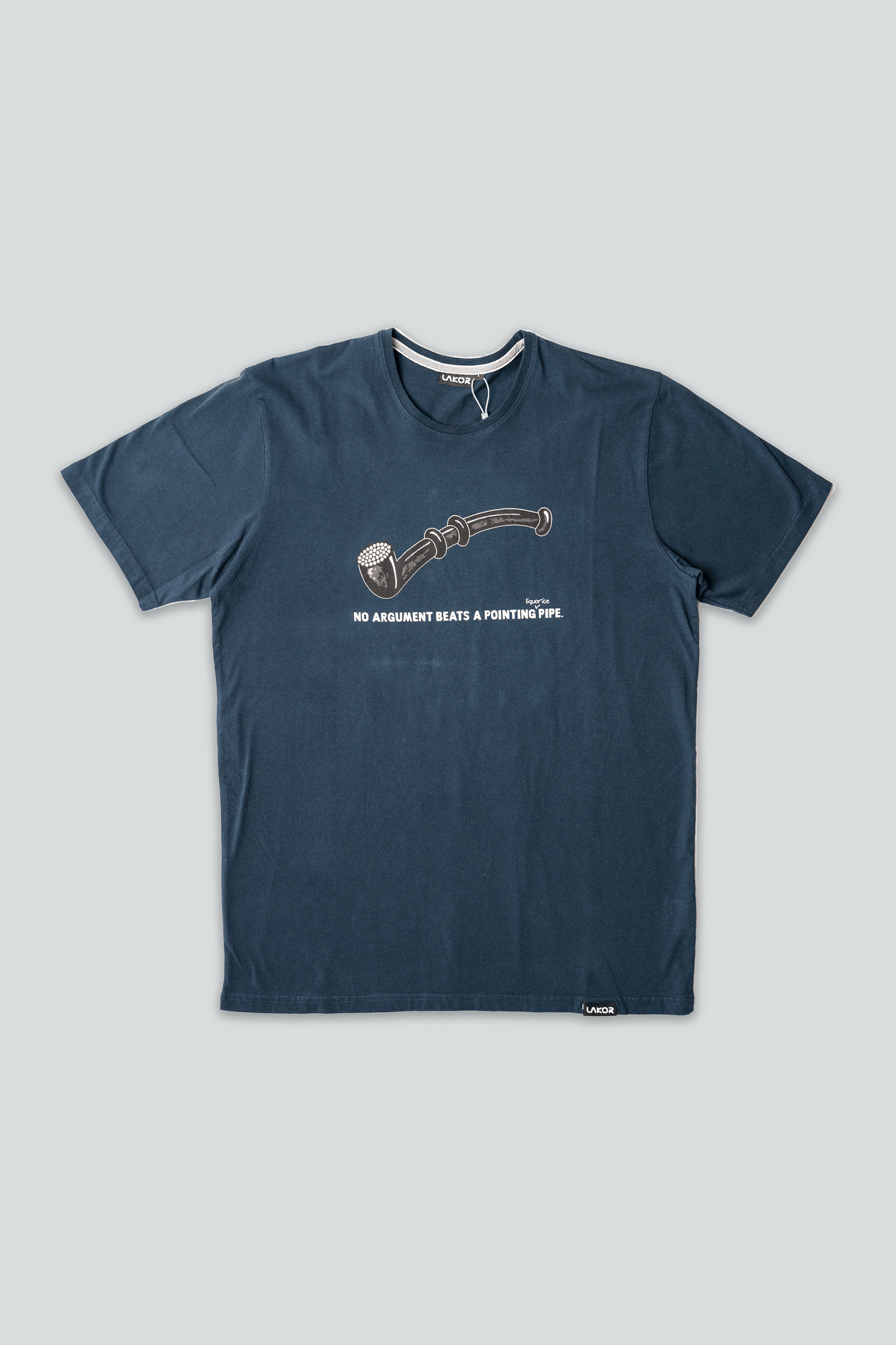 Her er piben, som oser af barndomsnostalgi. Det eneste stykke slik, som kan få danskerne op på lakridserne, når nogen truer med at tage det fra os. Denne T-shirt er en særudgave og derfor din mulighed for at forsøde tilværelsen med et lækkert stykke tøj...No argument beats a pointing liquorice pipe.