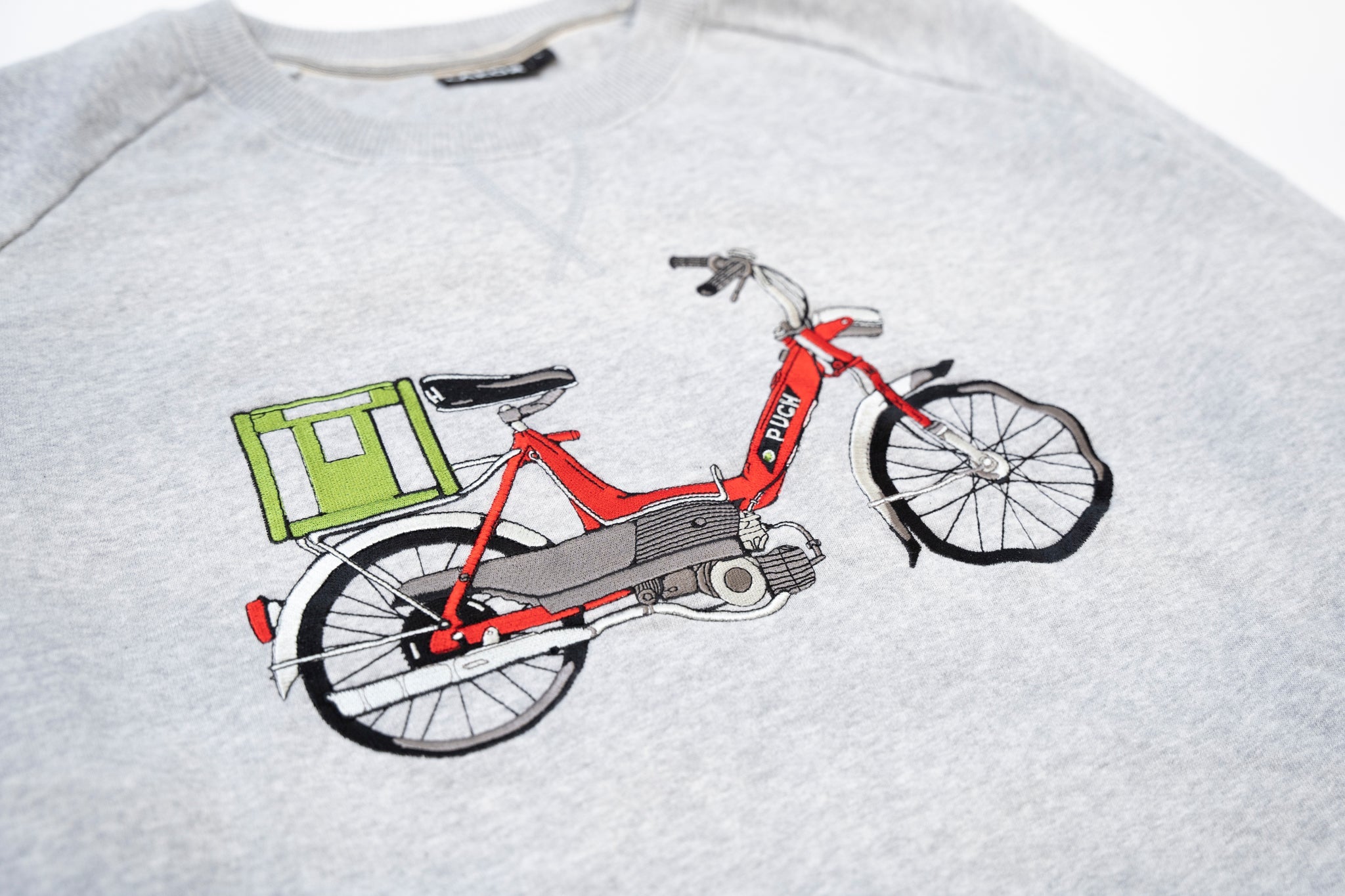 Dette design portrætterer piedestalen af den menneskelige formåen, og er kulminationen på den industrielle revolution…den to-gearede Puch Maxi med grøn mælkekasse!